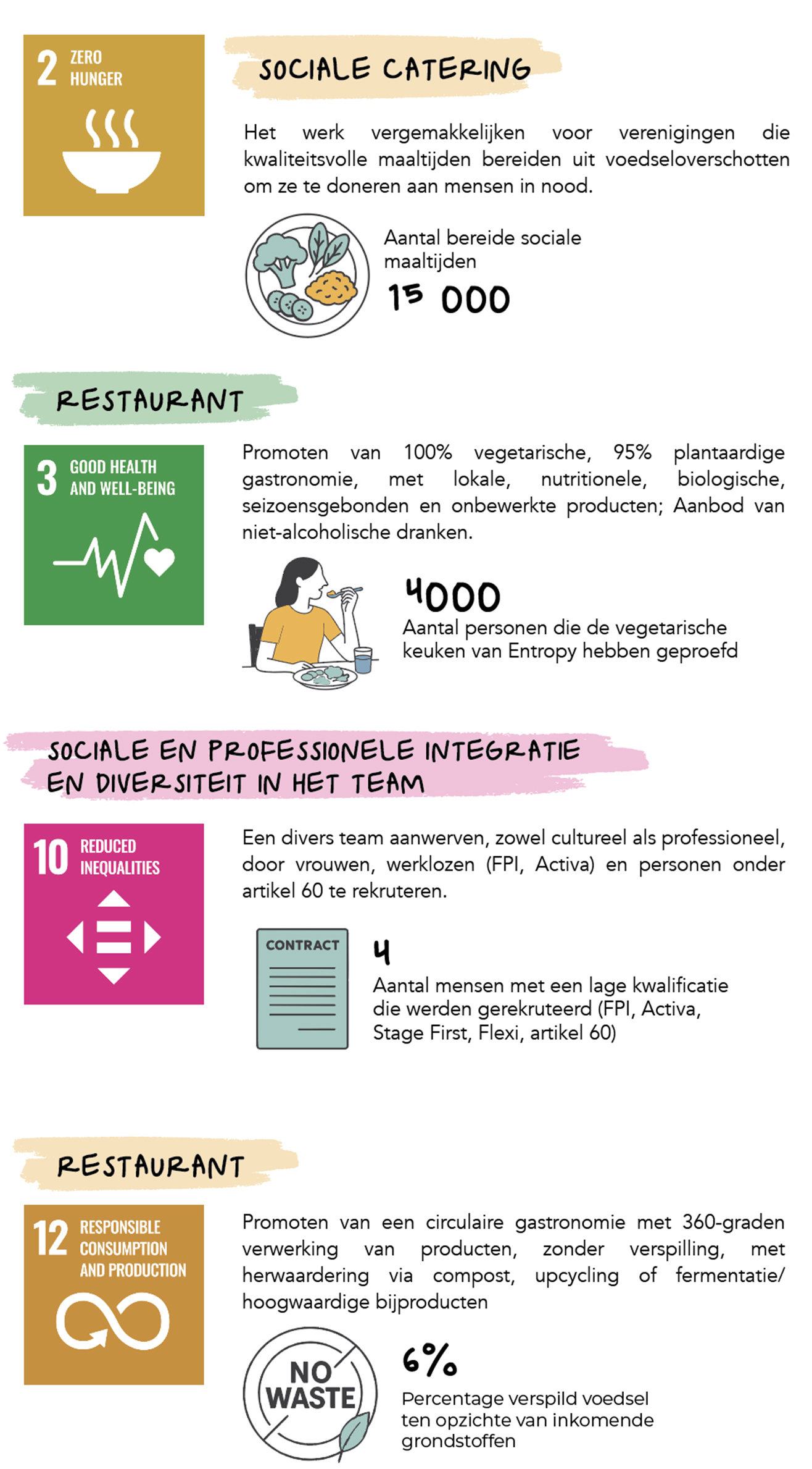 Hearth Project is ontstaan uit de wens om verandering teweeg te brengen door duurzaamheid, solidariteit en gastronomie in de horecasector te combineren. Dit sociale project omvat de recuperatie van voedseloverschotten, de bereiding van maaltijden voor mensen in nood en de organisatie van bewustmakingsworkshops. Deze drie acties worden gefinancierd door hun gastronomisch restaurant Entropy, dat het uithangbord is van hun expertise in plantaardige, intuïtieve keuken op basis van voedseloverschotten.
