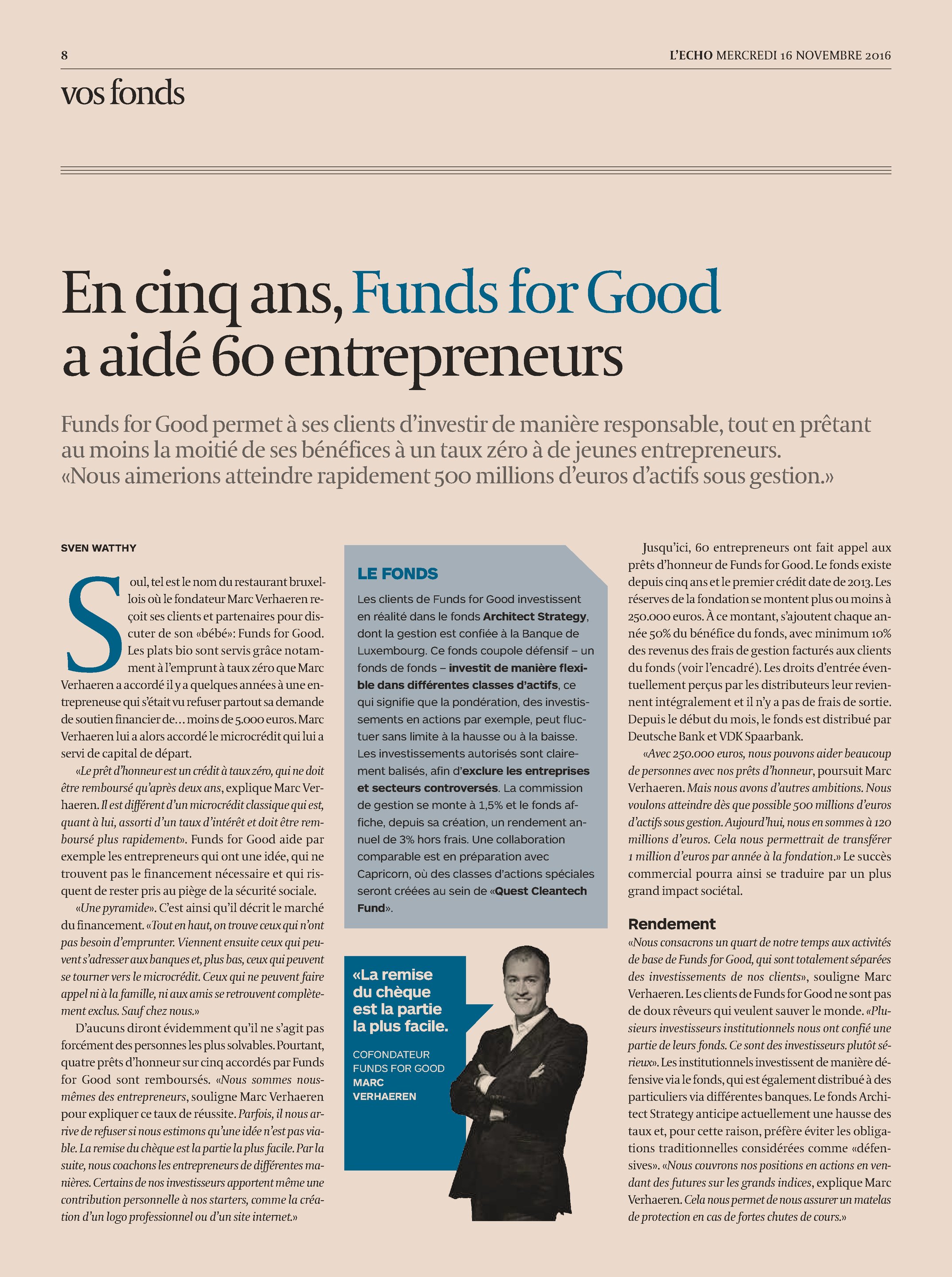L’Echo – Funds For Good : la gestion ‘actifs à la Belge