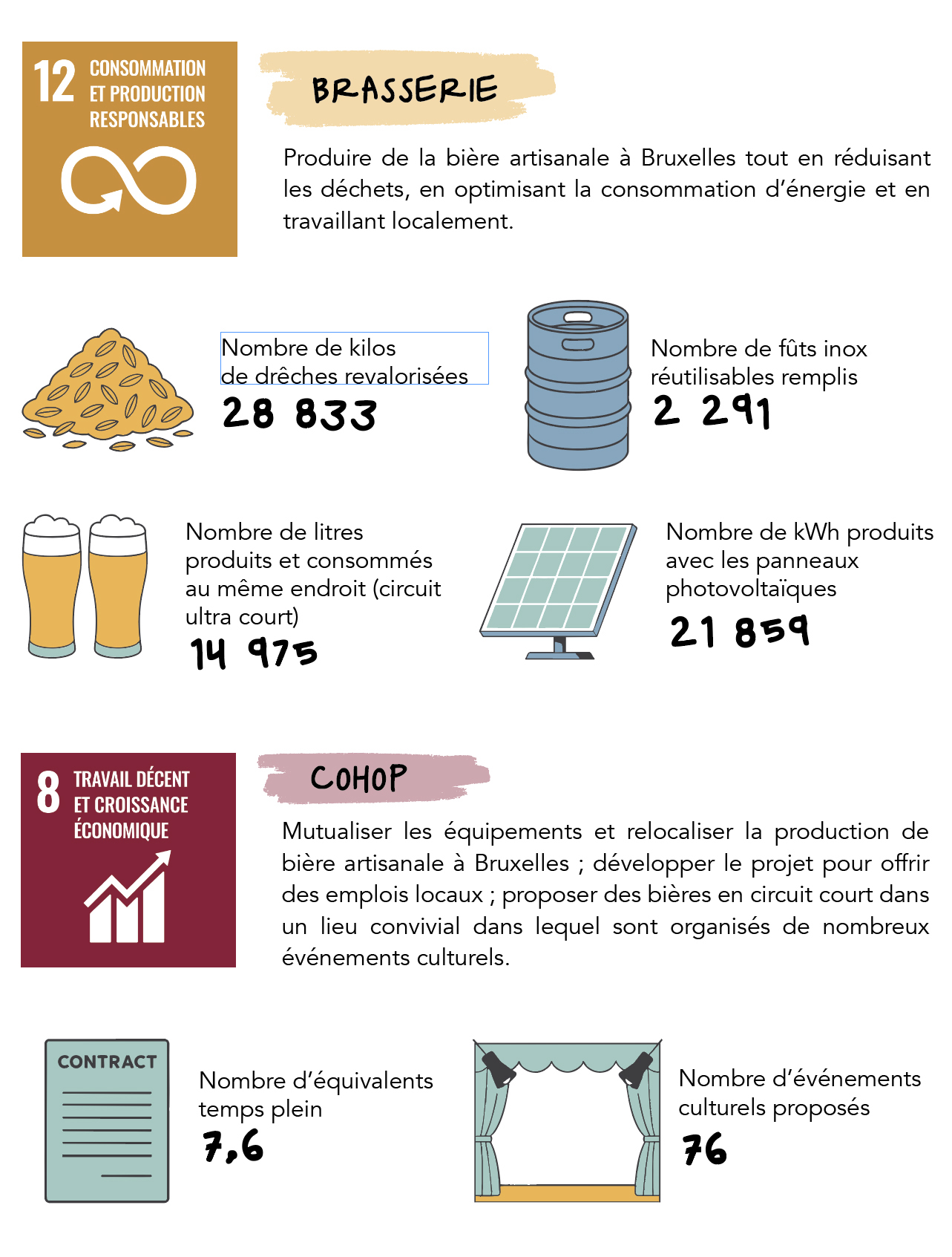 La CoHop, première coopérative de microbrasseries bruxelloise, se situe dans le domaine historique de l’Arsenal à Etterbeek. Ses valeurs incluent le partage, la relocalisation urbaine, la circularité et la réduction d’empreinte environnementale. Accessible à tous, cette brasserie éco-responsable propose des bières artisanales de qualité et mutualise lieu, matériel de brassage, compétences, un brewpub, un espace de formation, une sandwicherie et un beershop. Toutes les bières (24 variétés) sont brassées sur place, dont Cohop, Witloof, DrinkThatBeer, Janine et 1 Bière 2 Tartines.